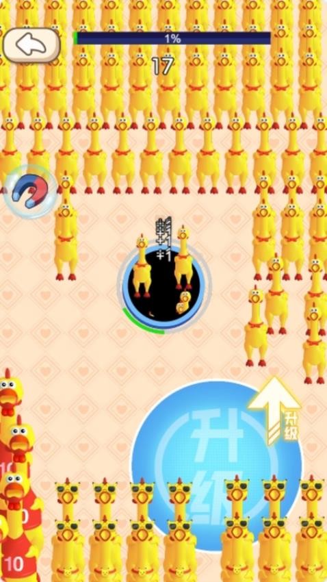 3、吞噬尖叫鸡界面,显示丰富的尖叫鸡,您需要在游戏界面一直吞噬,让黑洞越来越大。