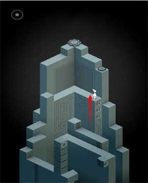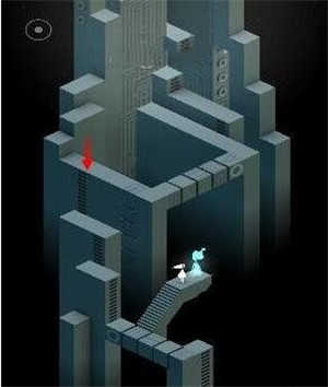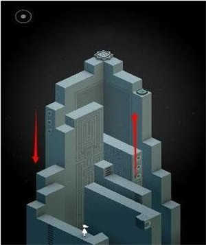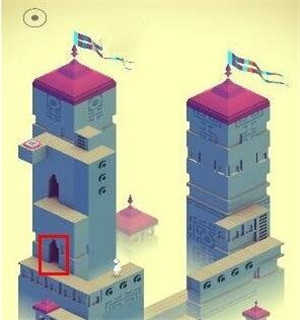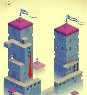 第二场景先登梯子,再调整建筑连接成特定形状,转动后进入最底层门。第三场景向上旋转建筑,让小人通过楼梯到达发光人物处,回到第二场景,四次旋转后进入顶层门,进入下一区域。