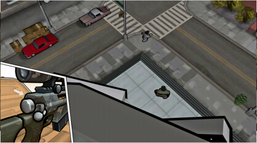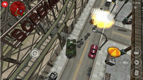 采用俯视角+动态旋转镜头设计,角色建模延续初代GTA漫画式黑色轮廓美学;完整复刻GTA4自由城地图(含Dukes、Broker等经典区域),独缺Alderney;创新“警车报销”机制替代传统逃逸——摧毁巡逻警车可直接降低通缉等级,而警星数量决定追捕强度:一星仅单辆警车,五星则迎来SWAT装甲车围剿,策略性拉满。