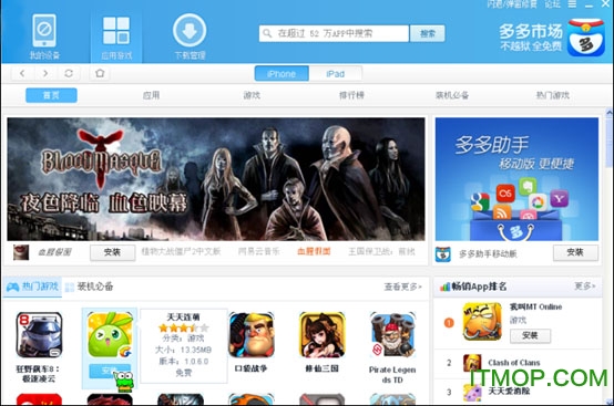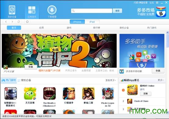 多多市场PC端——专为iPhone/iPad用户打造的免越狱iOS应用管理神器!无需繁琐操作、不依赖越狱,即可在Windows电脑上一键下载、安装、更新海量正版App与游戏,内容实时同步苹果App Store,是果粉高效管理设备的首选桌面助手。