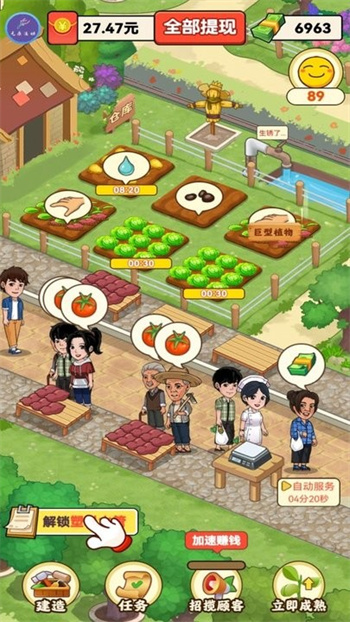 《幸福农家乐游戏最新版》是一款以“乡村振兴”为时代内核、深度融合模拟经营玩法的高沉浸度休闲手游。在这里,你将化身农家院主人,从一片待垦荒地起步,亲手规划菜园、养殖家禽、扩建民宿、接待游客——每一步经营都紧扣真实农事逻辑与乡村发展脉络。游戏不仅呈现精美细腻的手绘风田园画面,更通过层层递进的任务体系与成长反馈,让玩家在轻松点击间感受丰收喜悦、经营成就感与乡土温度的三重满足。