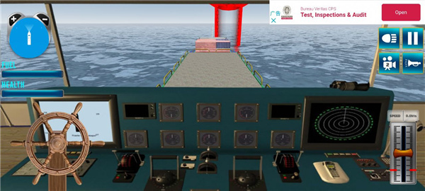 3、进入驾驶舱:左侧虚拟摇杆控制方向与推进,右滑屏幕自由环顾四周海况;