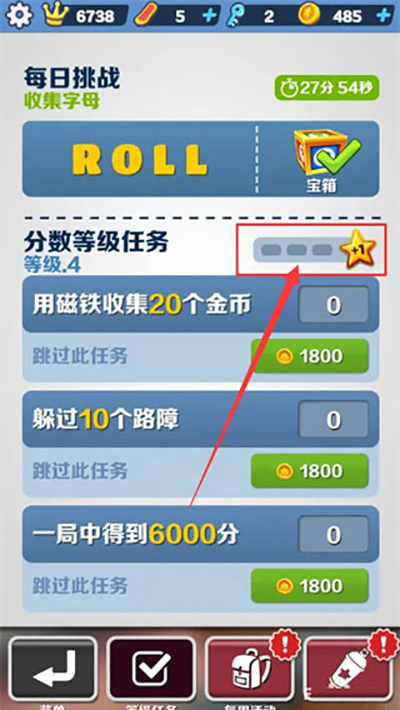 2. 使用金币兑换指定任务(如“奔跑2000米”“收集500金币”),确保每日3颗星星全勤;