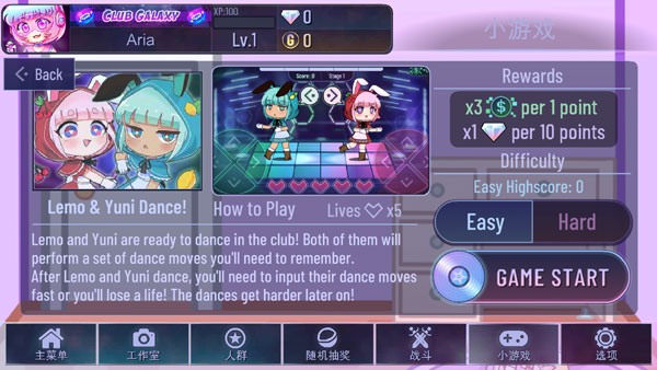 ? Lemo & Yuni Dance:节奏箭头模仿挑战,跟随舞步输入指令,强化手眼协调能力;