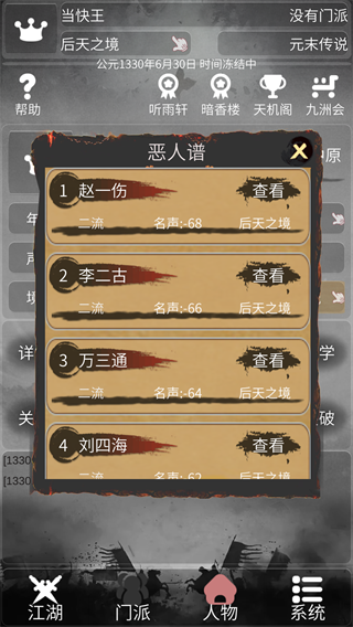 2、宗门经营与团队养成:招募志同道合的伙伴,组建专属队伍,逐步发展为名震天下的强大宗门,让江湖之路不再孤单。