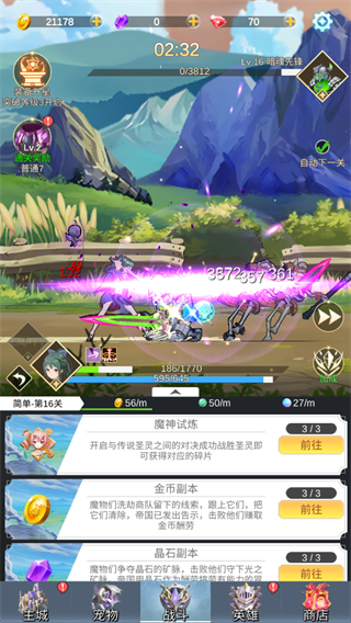 4. 画面流畅,支持战斗加速、经验加速及自动闯关,彻底解放双手