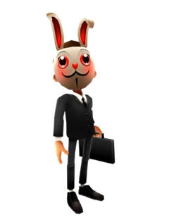 弗兰克:身着黑色西装、手提公文包的上班族,实则隐藏着黑客身份,兔子面具下藏着不为人知的秘密。