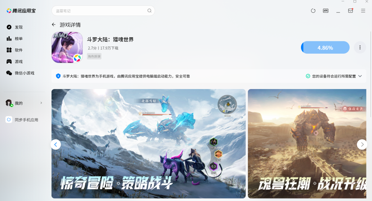 - 打开应用宝,在其中完成《斗罗大陆:猎魂世界》的安装;