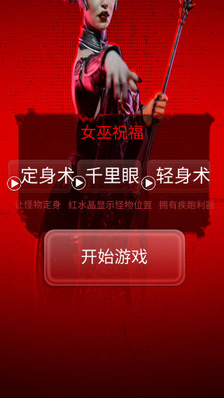 进入游戏后,玩家可选择“女巫祝福”系统,从中学习最多三项辅助技能:定身术(使附近怪物暂时无法行动)、千里眼(短暂显示怪物位置)和轻身术(提升移动速度)。技能数量越多,游戏难度相应降低,适合不同水平的玩家调整挑战强度。