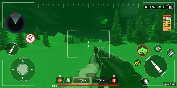 6、在部分夜间作战关卡中,可点击绿色功能键开启夜视镜,提升低光环境下的视野清晰度。