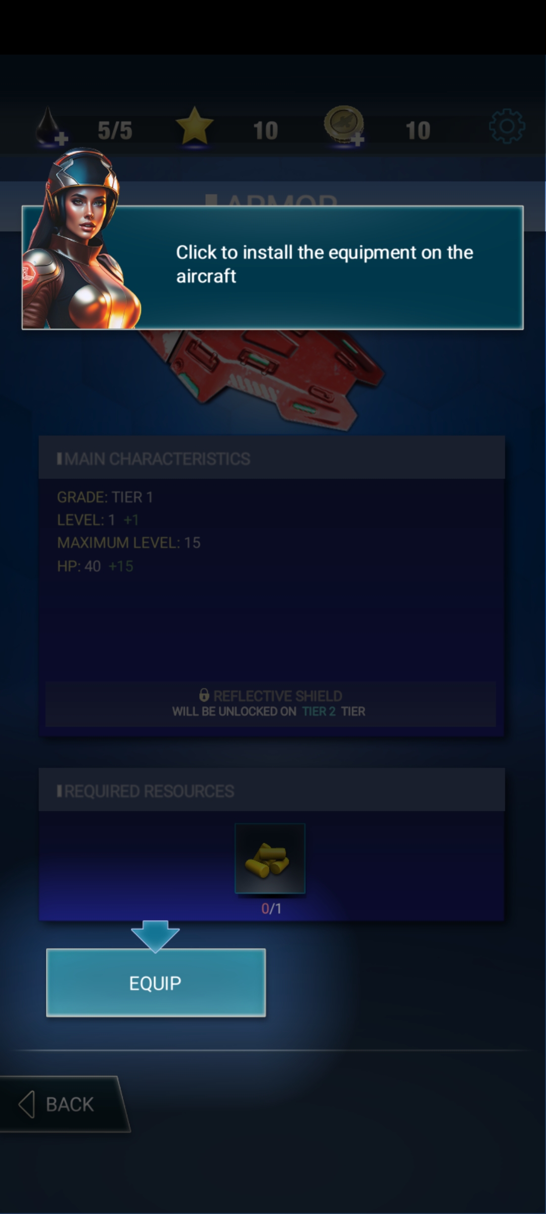 - 点击【Equip】将选定设备安装至战机,完成战前准备。