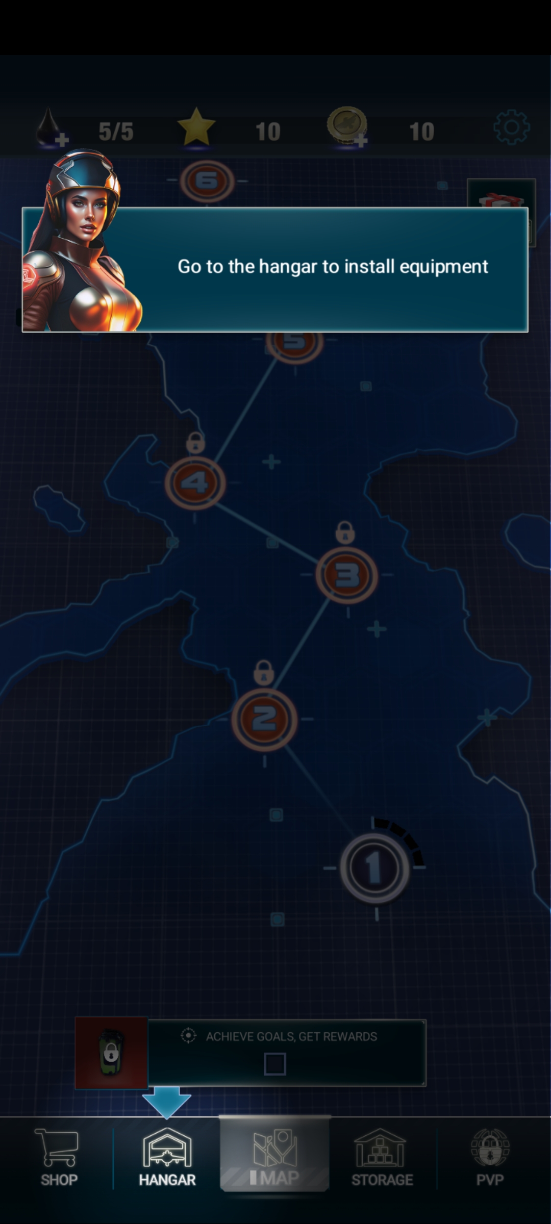 - 进入游戏主界面,点击【Hangar】(机库)进入装配界面;