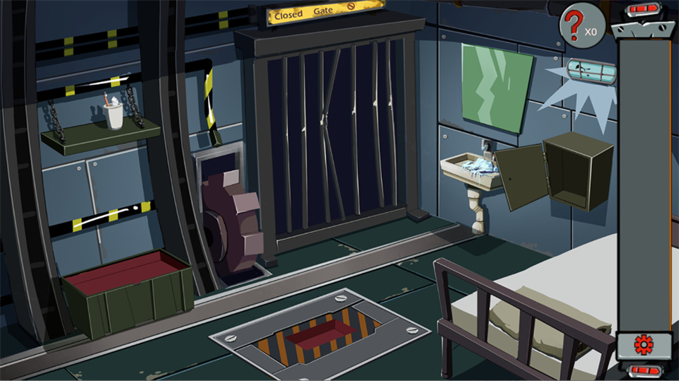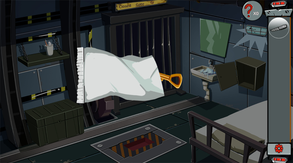 8. 先用小刀在铁门上制造切口,再用铁棍撬动门缝,即可成功突破牢房。