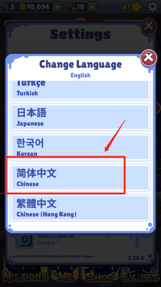 3、向下滑动语言列表,选择“简体中文”。