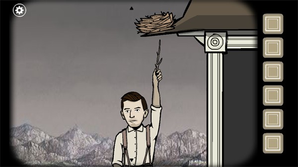 3、再次点击男士,将枝干交给他,随后多次点击男士,使其用枝干捅下房檐上的鸟窝;