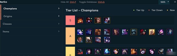 TFT云顶之弈助手tftactics是一款专为《英雄联盟:云顶之弈》玩家打造的实用辅助工具。由国外团队开发,现已推出中文版本,全面整合游戏内英雄、装备、阵容搭配等核心数据,帮助玩家快速掌握当前版本强势组合与策略。无论是盖伦、剑姬、卡萨丁还是德玛西亚皇子,你都能随时查阅其技能详情、伤害数值及适配阵容;同时,软件还提供详尽的装备说明,助你精准分配资源,打造最优战力。值得注意的是,tftactics并非外挂程序,不修改任何游戏数据,完全符合Riot官方服务条款,安全无封号风险,是一款真正高效、可靠的游戏信息查询平台。