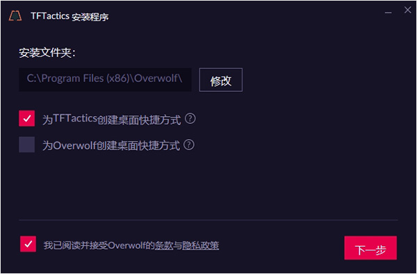1、下载并解压本站提供的安装包,双击运行 TFTactics-Installer.exe 启动安装程序;