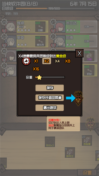 4、随着等级提升,可在设置中调整游戏时间流速;此外,手动点击任务栏区域可主动推进时间,每次点击代表流逝一天,便于灵活掌控节奏。