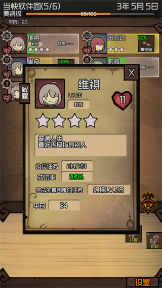 1、游戏的核心玩法围绕“接取任务—培养超模队员—扩充佣兵团”展开。任务成功率由角色星级与任务等级共同决定,星级越高代表资质越强。点击任意队员头像,即可查看其详细属性信息。