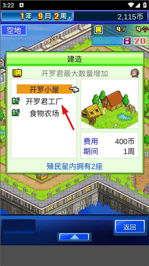 - 打开建造菜单,选择“扩建开罗小屋”,支持工厂、农场等多种类型;
