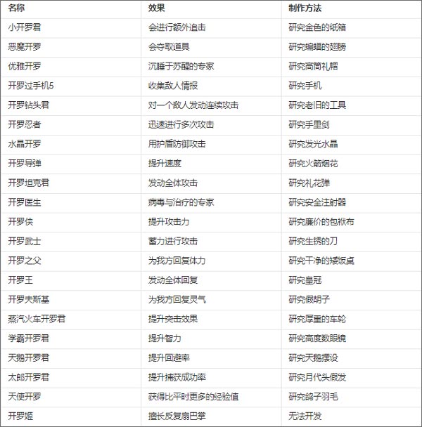 除普通开罗君外,特殊开罗在战斗与发展中扮演关键角色。例如:天使开罗可提升全队经验值获取效率,开罗侠则显著增强攻击力。这些角色不仅能通过研究解锁,部分还会在巡视途中主动加入队伍,具体组合效果值得玩家深入探索。