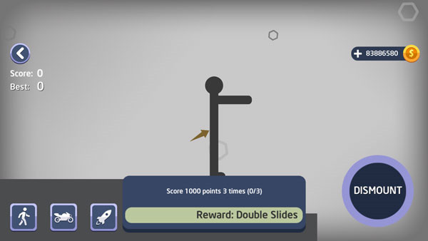 3. 游戏中通过长按左下角“DISMOUNT”按钮控制火柴人的动作与姿态。