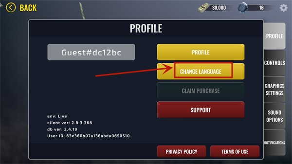 2. 在设置菜单中找到“CHANGE LANGUAGE”选项,点击进入语言选择页面。