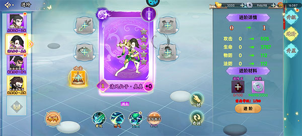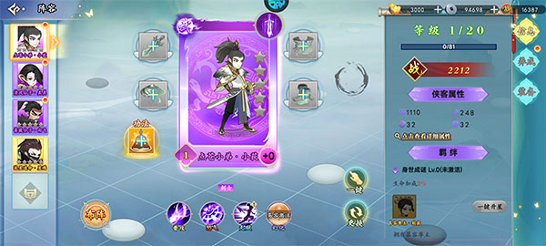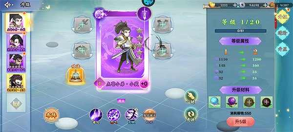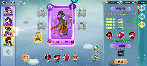 4、升星提升资质:消耗对应材料对侠客进行升星,显著增强基础数值与技能效果。