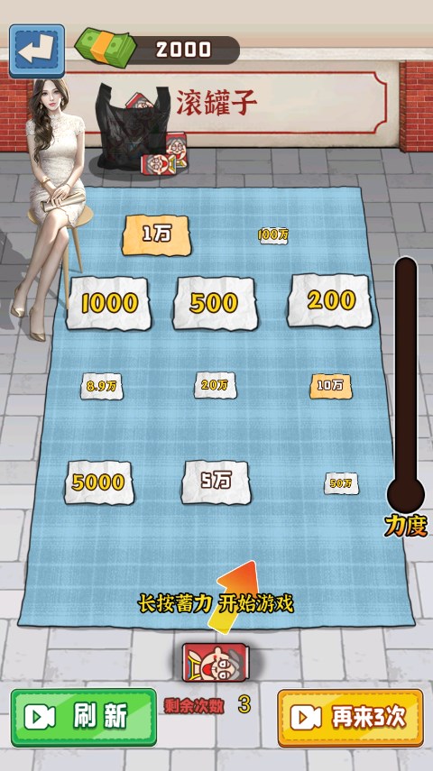 - 瓶子滚动过程中收集到的金币将全部归你所有。虽然初始仅有三次机会,但可点击右下角“再来三次”按钮,免广告即可额外获得三次尝试机会,高效赚取启动资金!