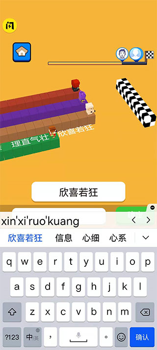 7、快到终点了,欣喜若狂:xinxiruokuang这成语能代表我现在的心情。