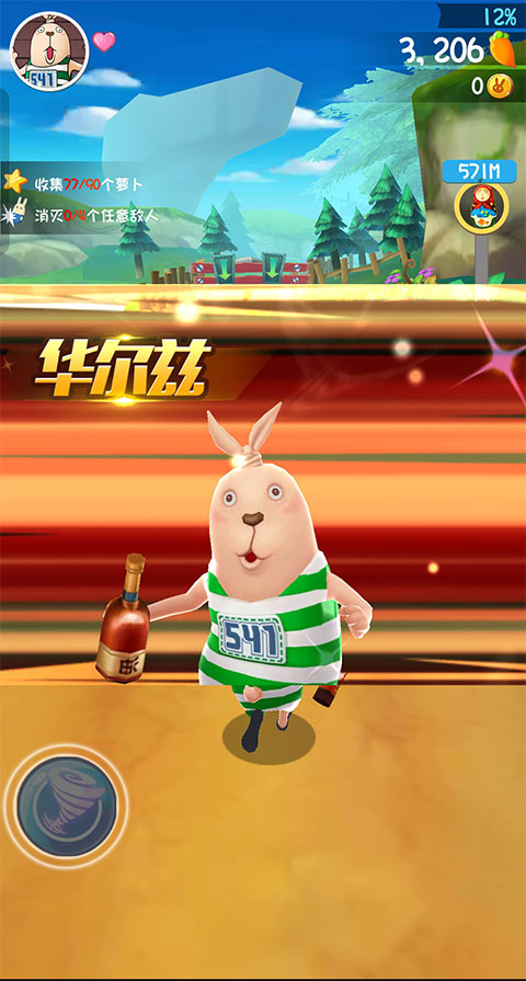 在逃亡途中,玩家可收集胡萝卜、金币、糕点等丰富道具。这些资源不仅提升闯关趣味,还可用于解锁原著中的双兔角色及强化速度、跳跃等关键属性,助力更轻松地突破难关。