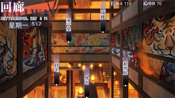 初次进入游戏后,玩家需完成序章剧情,随后将回到自宅作为行动起点。此时可自主操作角色外出探索,部分区域需满足特定条件(如剧情进度或属性值)方可解锁。