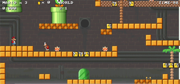 2、靠近问号砖块时连续跳跃,可获得关键道具:蘑菇能让马里奥变大增强容错率,金币则可用于后续道具兑换。
