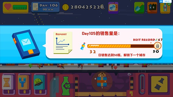 4、当日销售量达到设定目标后,将解锁全新的城市区域,开启更广阔的市场。