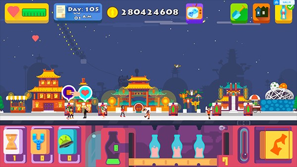 苏打世界采用2D横版画面呈现,巧妙融合了朴素的手绘插画风格与高饱和度的鲜艳色彩,营造出轻松又充满活力的游戏氛围。在游戏中,形形色色的NPC会前来购买你制作的苏打汽水,喝完后甚至会“一飞冲天”,带来意想不到的趣味体验。通过与这些顾客互动,玩家可以逐步了解各类设施的功能与用途。此外,游戏还提供了丰富多样的特色玩法,供玩家自由探索。值得注意的是,玩家需精心管理自己的饮料工厂——只有持续产出高品质的苏打饮品,才能推动工厂不断升级,拓展业务版图。