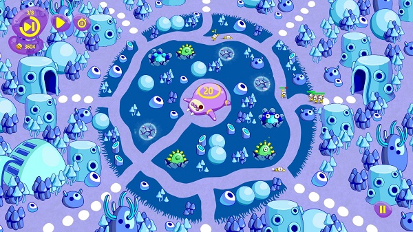 既然是塔防游戏,布置防御炮塔是基本功,本作也不例外。当然这款游戏可不止这点能耐,玩家可以旋转战场,调整到最有利的位置。