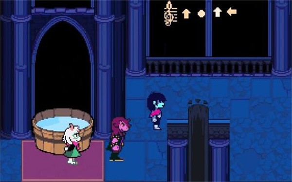 2、继续前往城堡右侧另一区域,在靠近一大盆水的位置会触发一场战斗。此战难度较低,只需灵活躲避弹幕即可获胜,胜利后可取得第二段密码。
