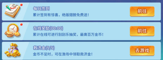 - 在线刮刮乐:达到指定在线时长即可刮奖,赢取金币。