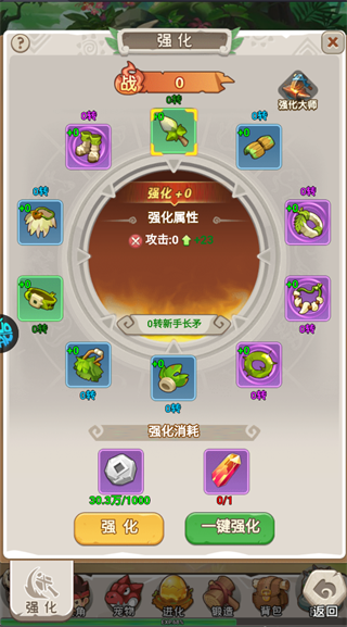 前期战力主要依赖装备强化,消耗银币与强化材料即可逐件提升属性,游戏还提供一键强化功能,助你快速拉满全身装备,显著提升角色面板数值。