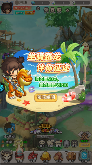 新玩家登录即可领取初始坐骑「荒漠跳龙」,闯关至第50关更可直接解锁VIP10,起步即拥有代步工具与高阶成长权益,轻松领先一步。
