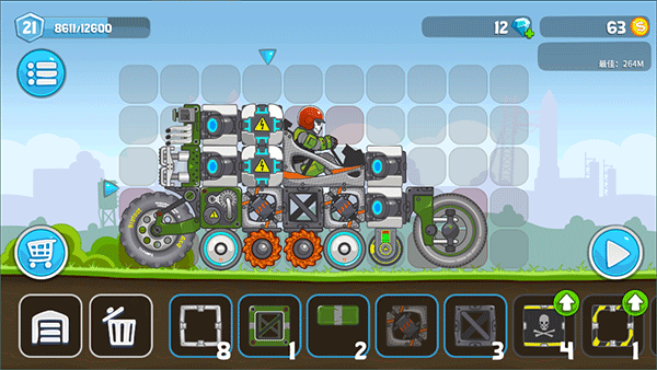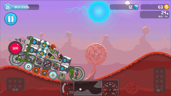 3、正式出发!操作极为直观:左侧按钮控制后退,右侧控制前进;若车头翘起需轻点刹车,车尾腾空则及时加速,掌握平衡即可畅行无阻;
