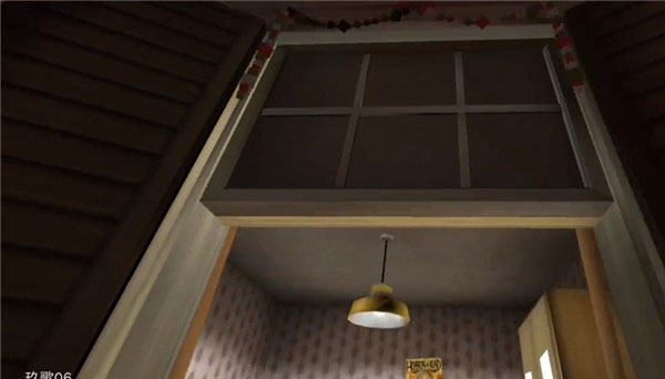3. 进入客厅,可查看人像获得密码“1977”(非必需),随后用洗发水旁的鸡毛掸子清理楼梯下方的蜘蛛网。(注意:切勿触碰电视,否则必须躲入窗帘后!)