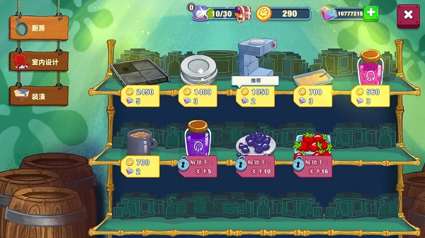 掌握基础烹饪后,可前往“便宜货市场”购买升级道具:更高效的厨房电器能加快出餐速度,提升顾客满意度;更多盘子意味着同时服务更多客人,带来更多收益与笑容。