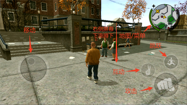 - 基础操作简洁直观:左侧虚拟摇杆控制角色移动,右侧按钮负责攻击与互动。特别注意,下蹲动作并非通过独立按键实现,而是通过向下滑动右侧屏幕完成。