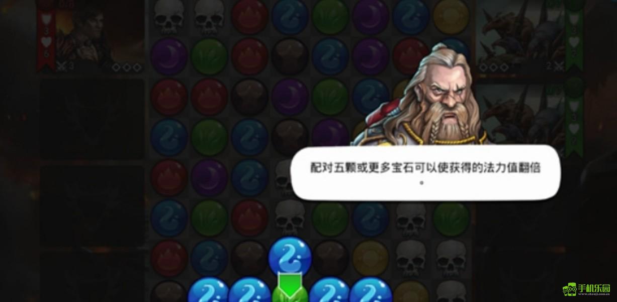 2. 通过滑动宝石进行三消操作,触发攻击或防御效果。每次至少消除三个相同颜色的宝石才能生效。成功击败敌人后可获得系统奖励,用于购买道具或强化装备;每日登录还可领取免费礼物与资源。
