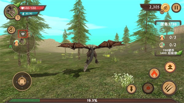游戏采用任务导向的升级模式。地图会标记周边猎物,右上角显示当前任务目标及数量。完成击杀后即可升级并解锁新任务。战斗中,龙可使用爪击或元素魔法,持续杀戮不仅能获取资源,更是强化自身、成长为顶级掠食者的关键路径。