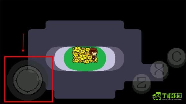 1、游戏左下角设有方向控制轮盘,用于移动角色;同时,该轮盘也用于在菜单界面中进行选项选择。