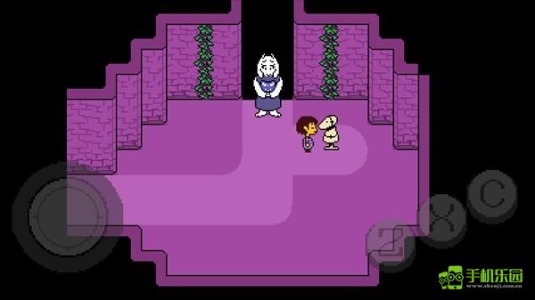 4、从初始跌落点向右穿过门后,会遭遇名为“花儿”的角色。它表面友善,实则意图用红色心形攻击你。关键时刻,遗迹守护者Toriel及时现身将其击退,并承诺带你安全离开墓穴。