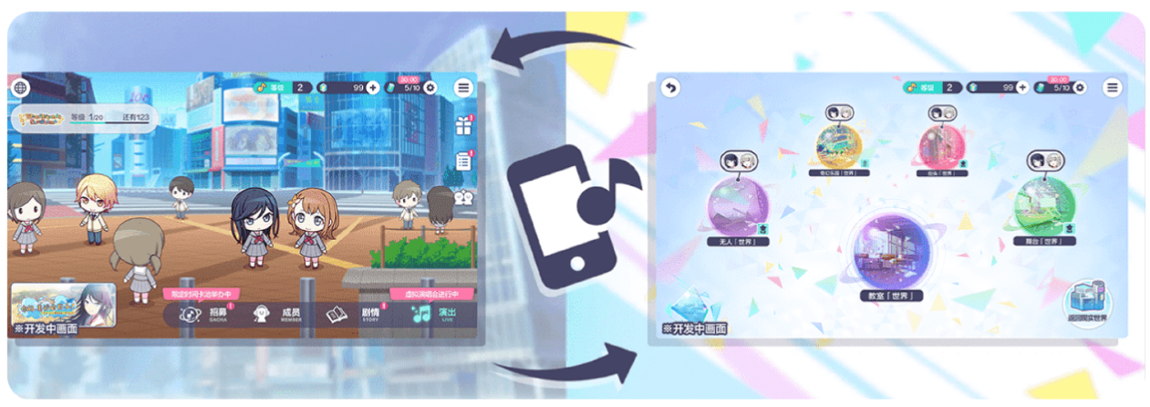 五组怀揣音乐梦想的少年少女——从儿时玩伴到网络社团成员,每个人都有独特背景故事等待发掘。通过招募、编组与养成提升战力,解锁新服装与7个现实场景、5个「世界」场景,探索过程中还能获得额外奖励。