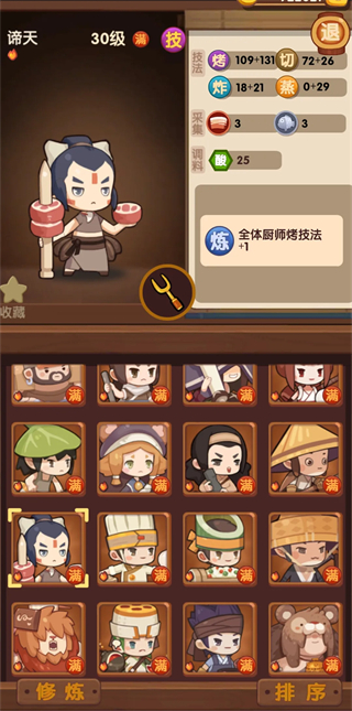 所有已拥有的厨师均建议升至满级。满级后可开启修炼任务,完成后获得的属性加成部分可惠及全体厨师,显著提升整体效率。